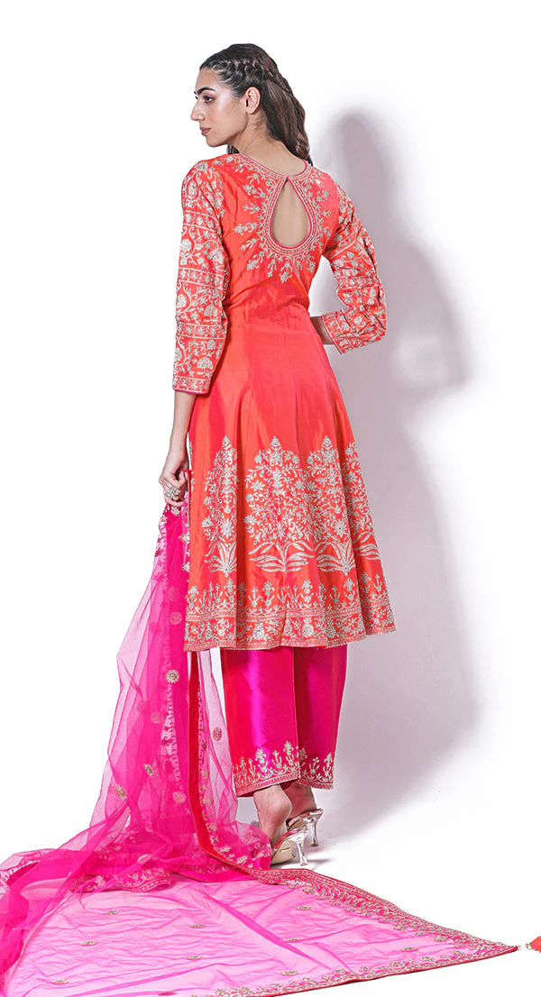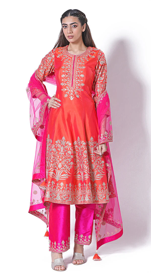 Wine hand embroidered geometric jacket, styled with an abstract handcrafted and sequined sharara and teamed up with a stylish bustier with tassle drops Your Size Measurement’s Or Contact Number (Only For Custom Stitched Option)